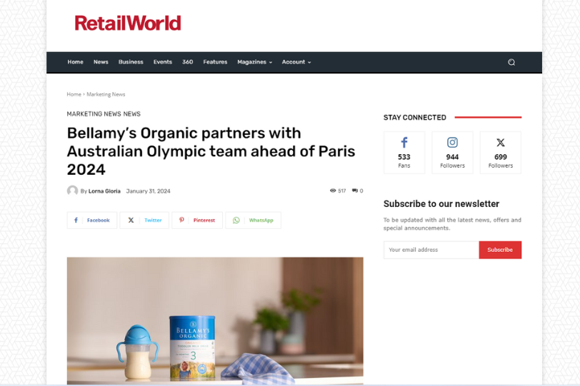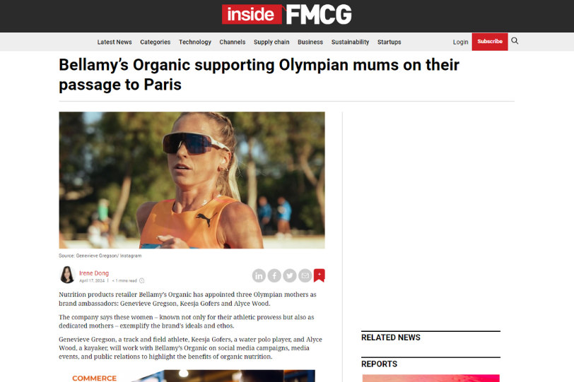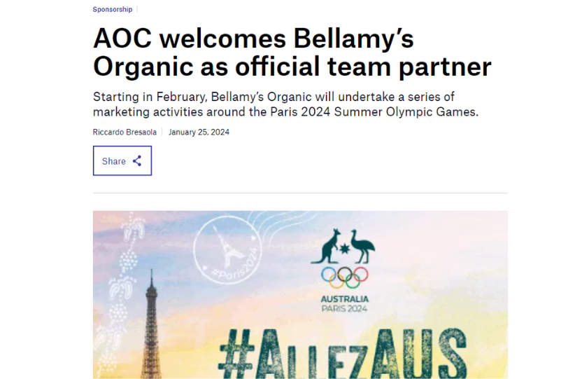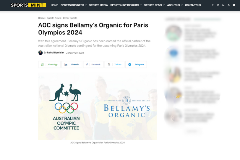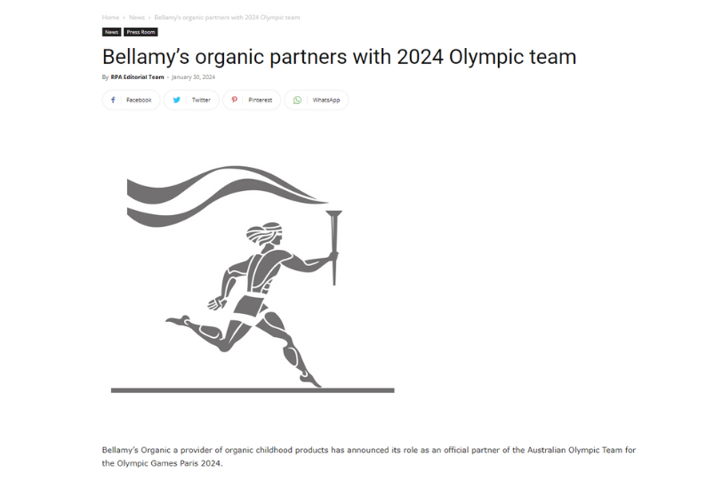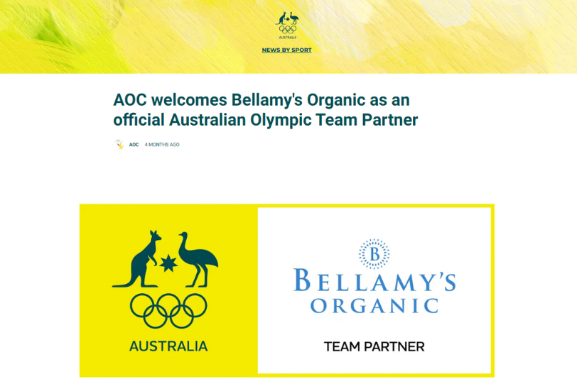 As a brand committed to promoting the healthy growth and development of young children through organic nutrition for 20 years, Bellamy’s Organic is honoured to support the resilience and excellence demonstrated by the athletes representing Australia in the 2024 Paris Olympic Games.